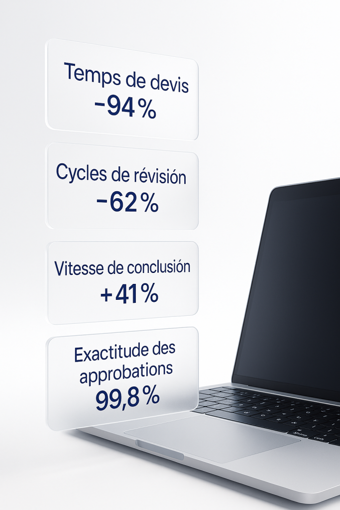 Les règles de tarification automatisées, les circuits d’approbation et le suivi client ont réduit les cycles de révision de 62 %, tout en augmentant la vitesse de conclusion de 41 %.